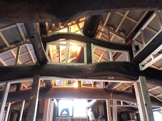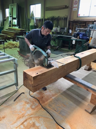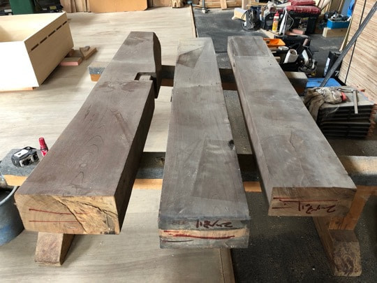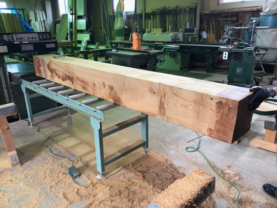 既存のケヤキ梁を製材して製作
