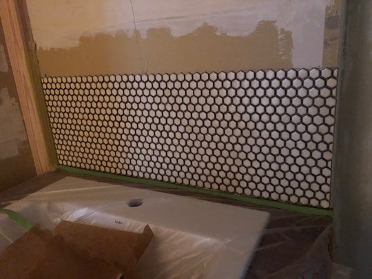 洗面タイル貼り