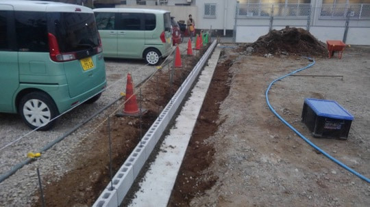 穴あきレンガ施工