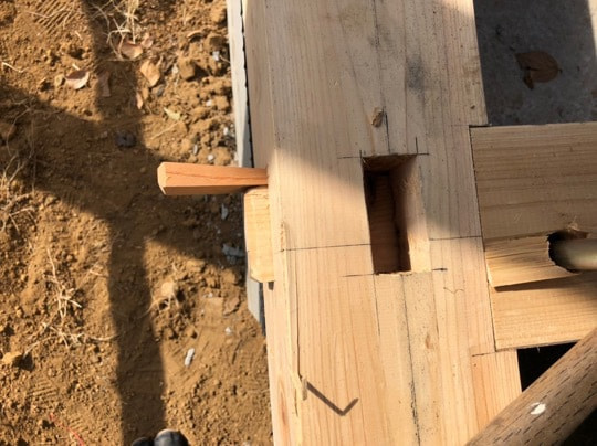 土台隅差柄割くさび固め