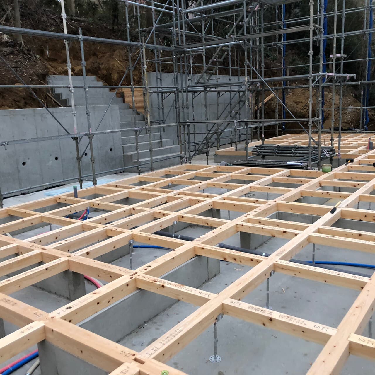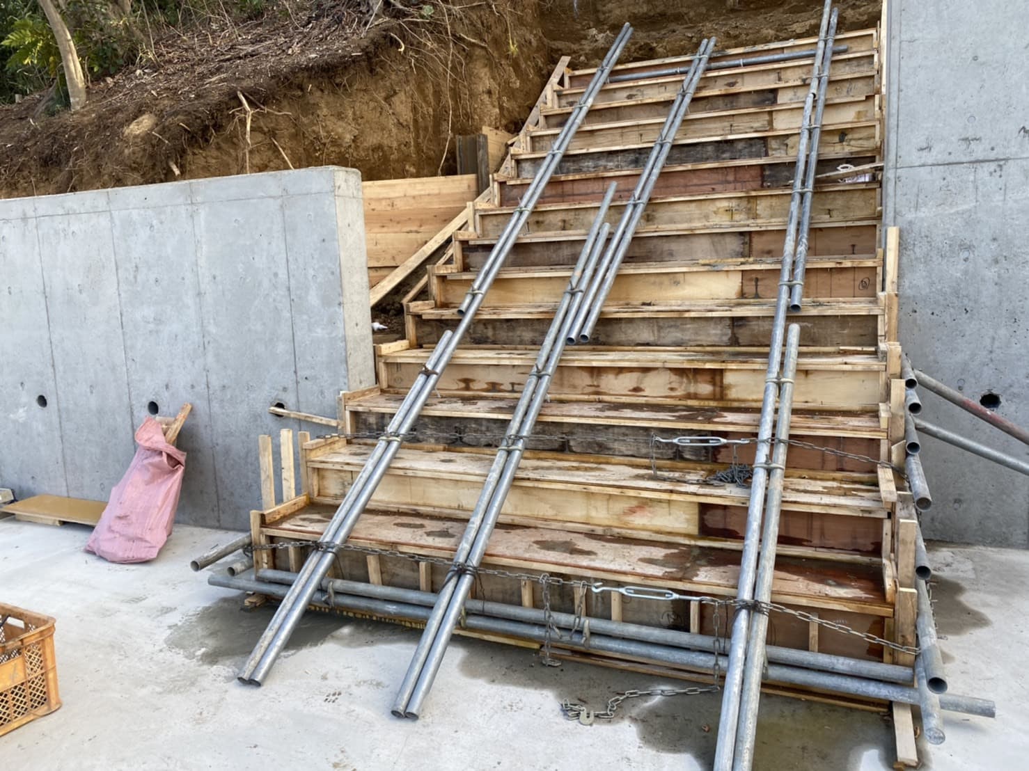 階段部分仮枠設置