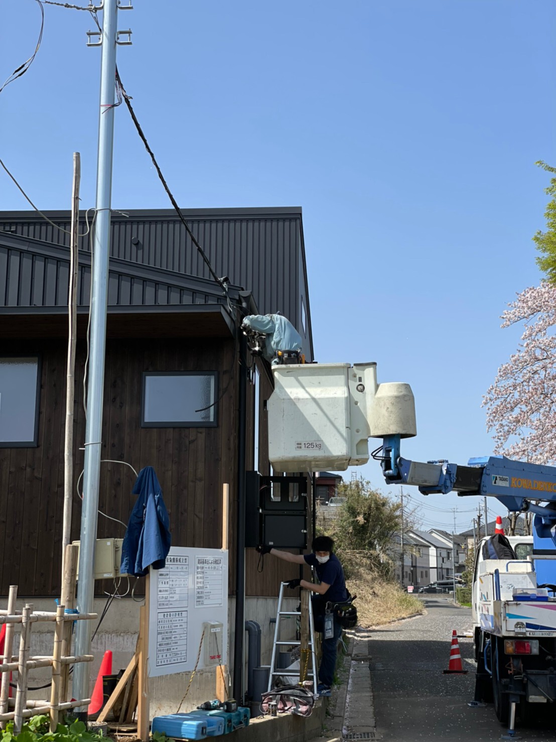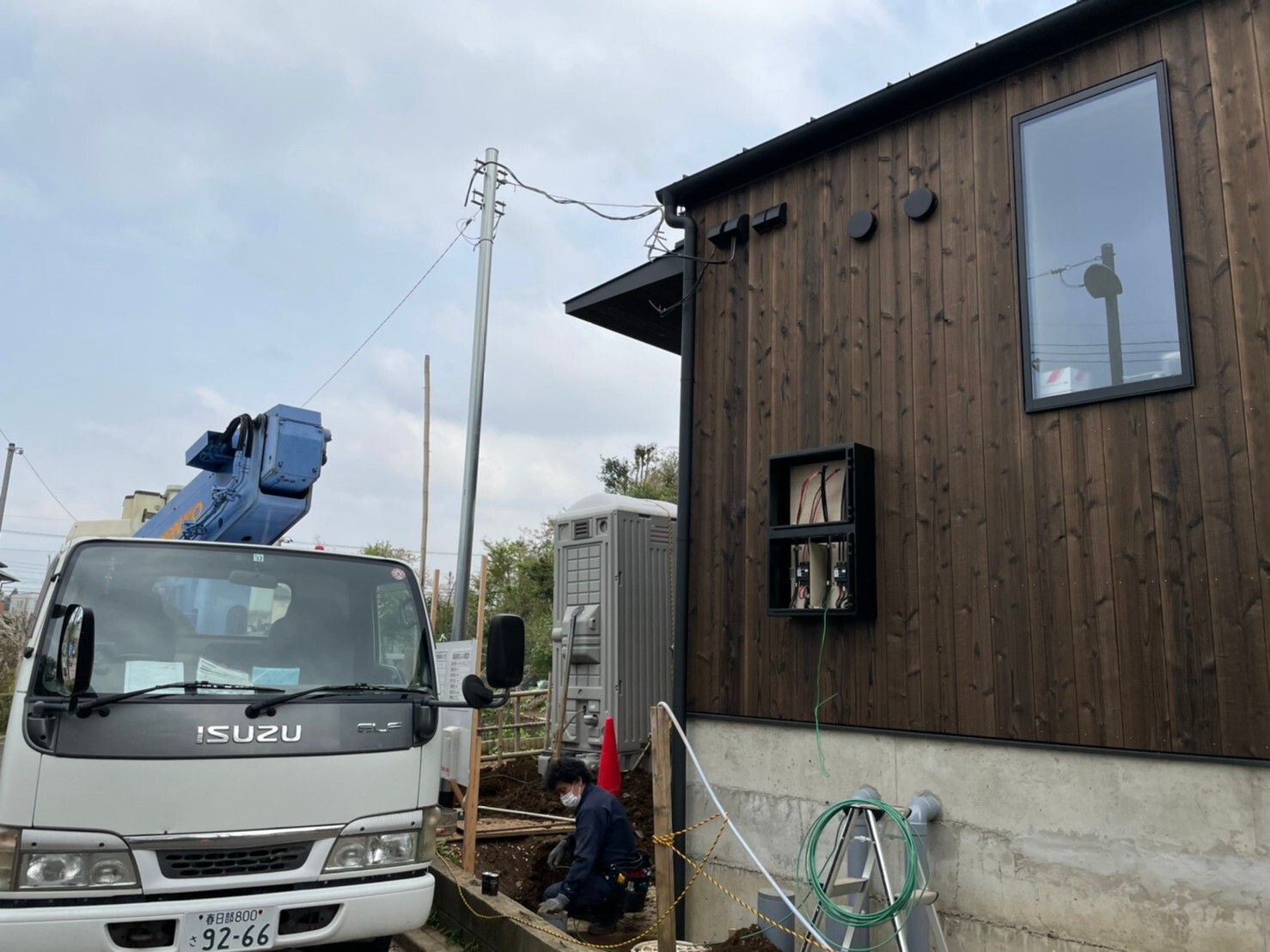 仮設電気ポール建て