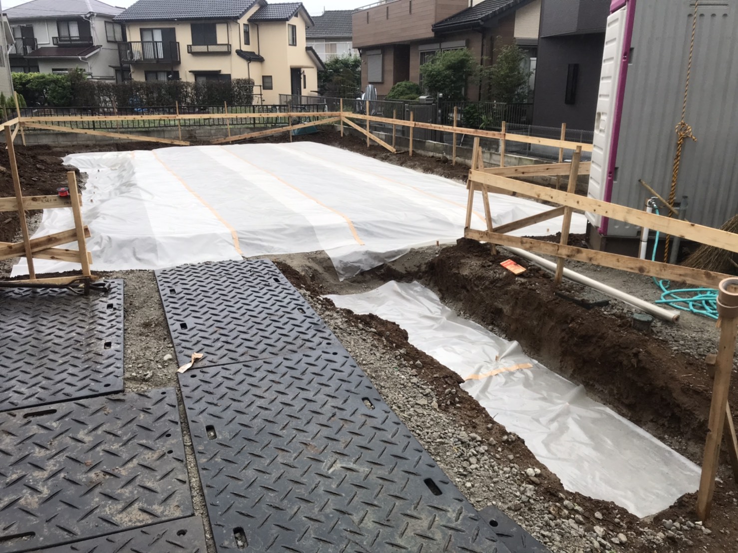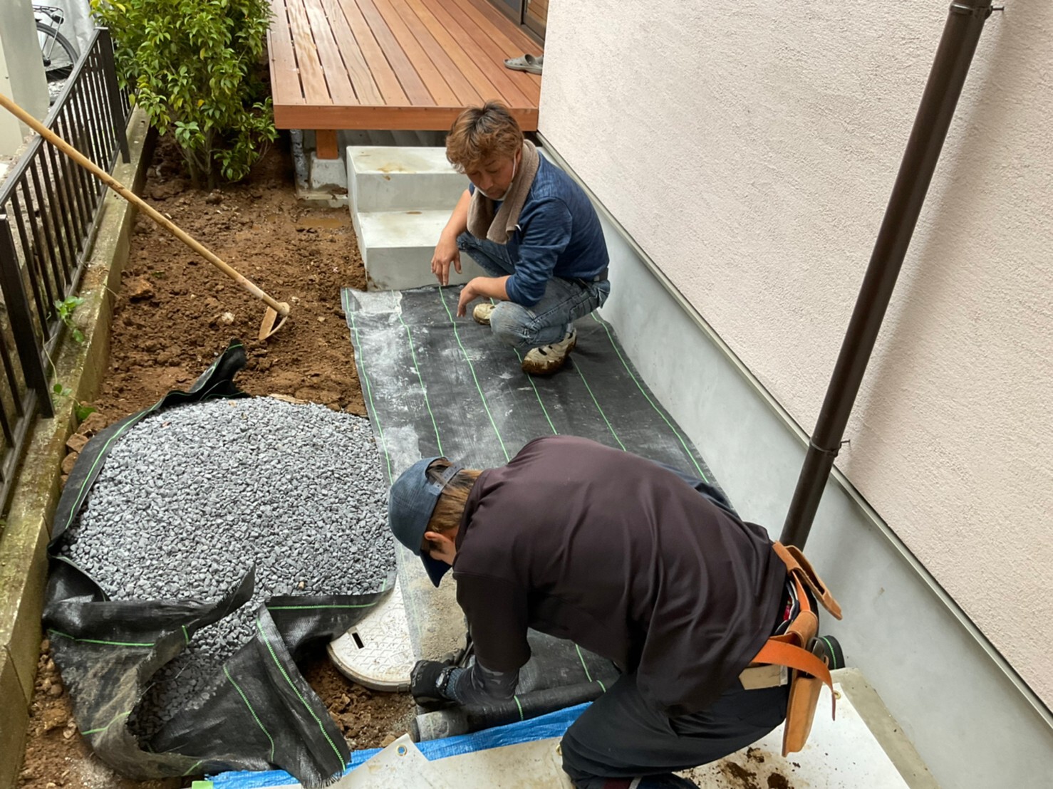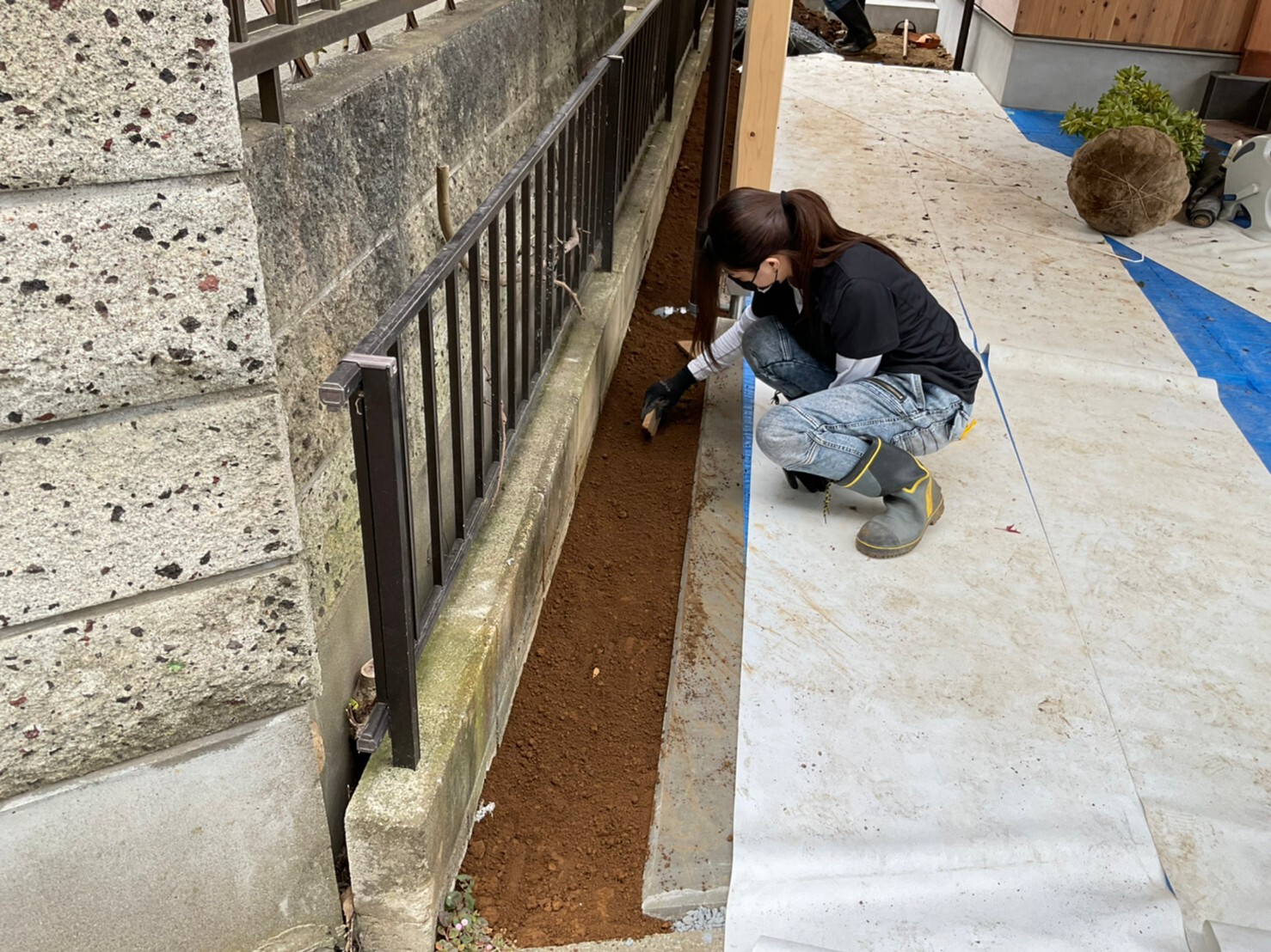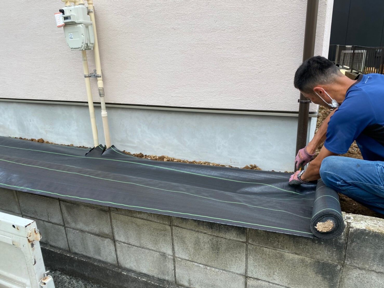 外周泥よけシート敷き
