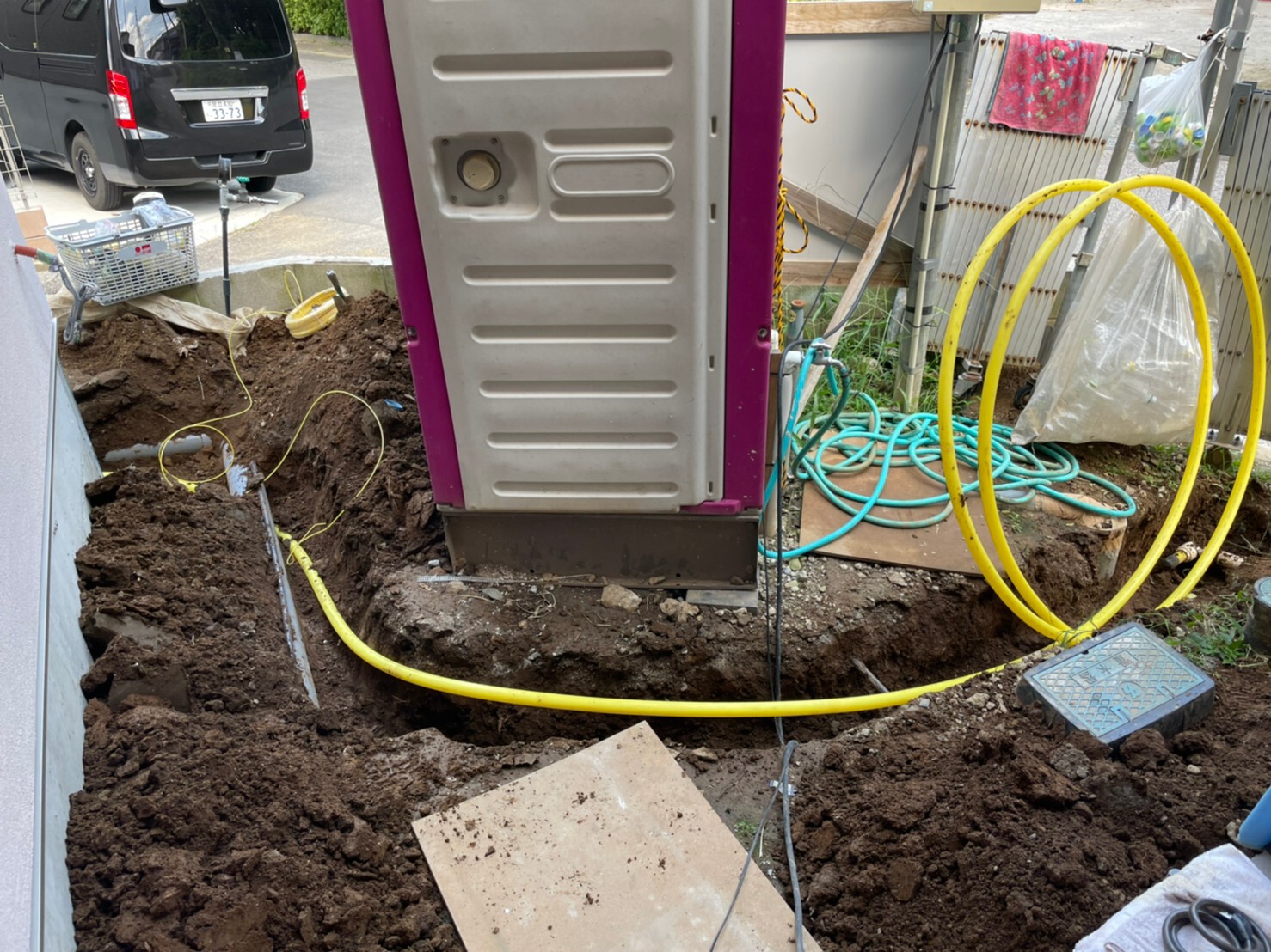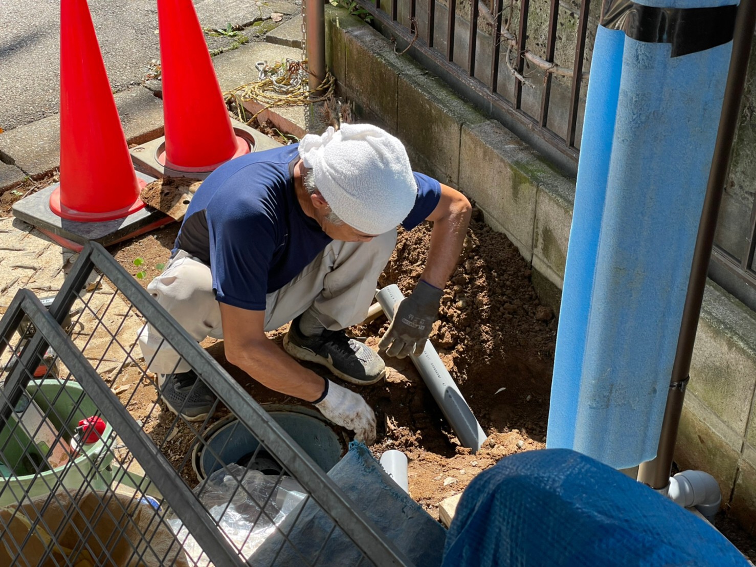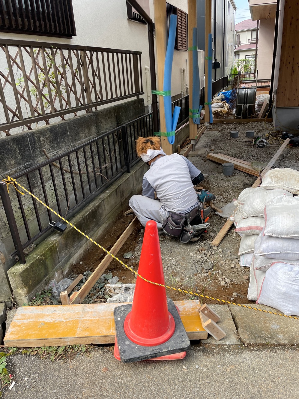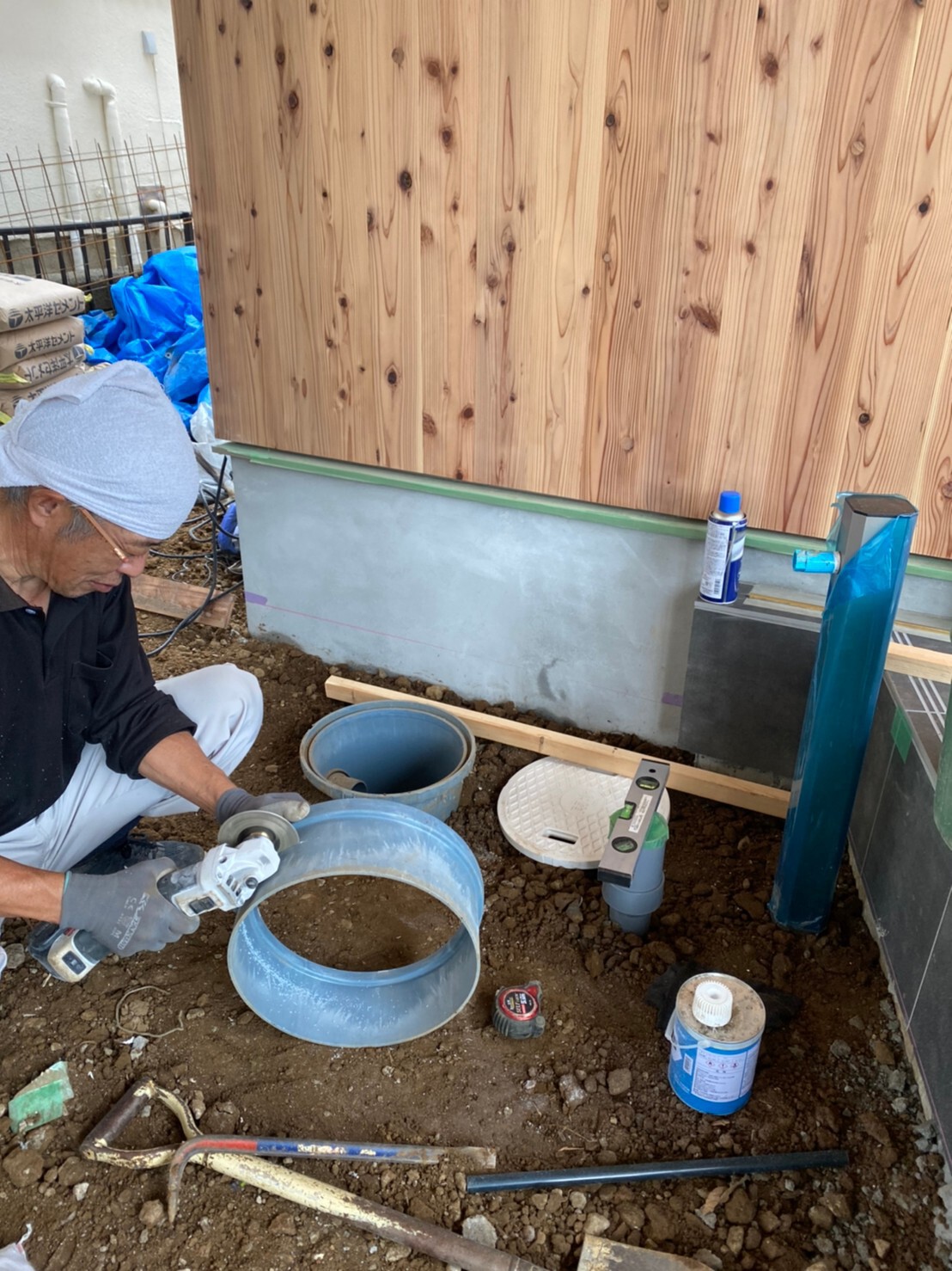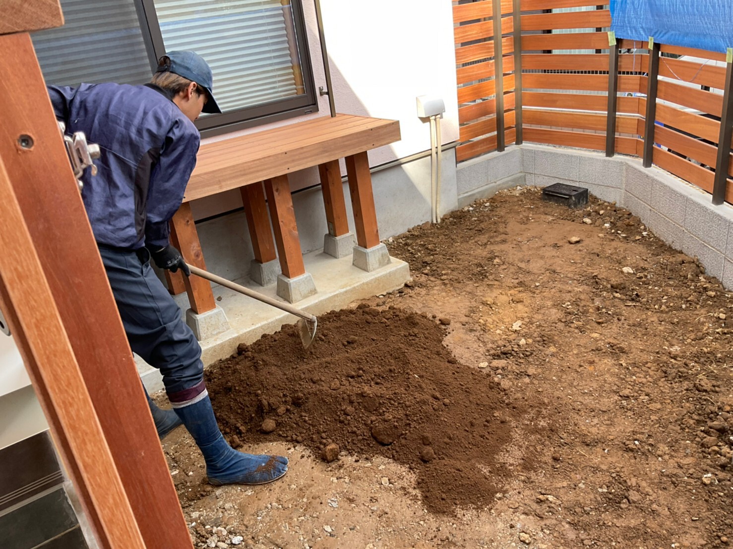 外周泥よけシート敷き
