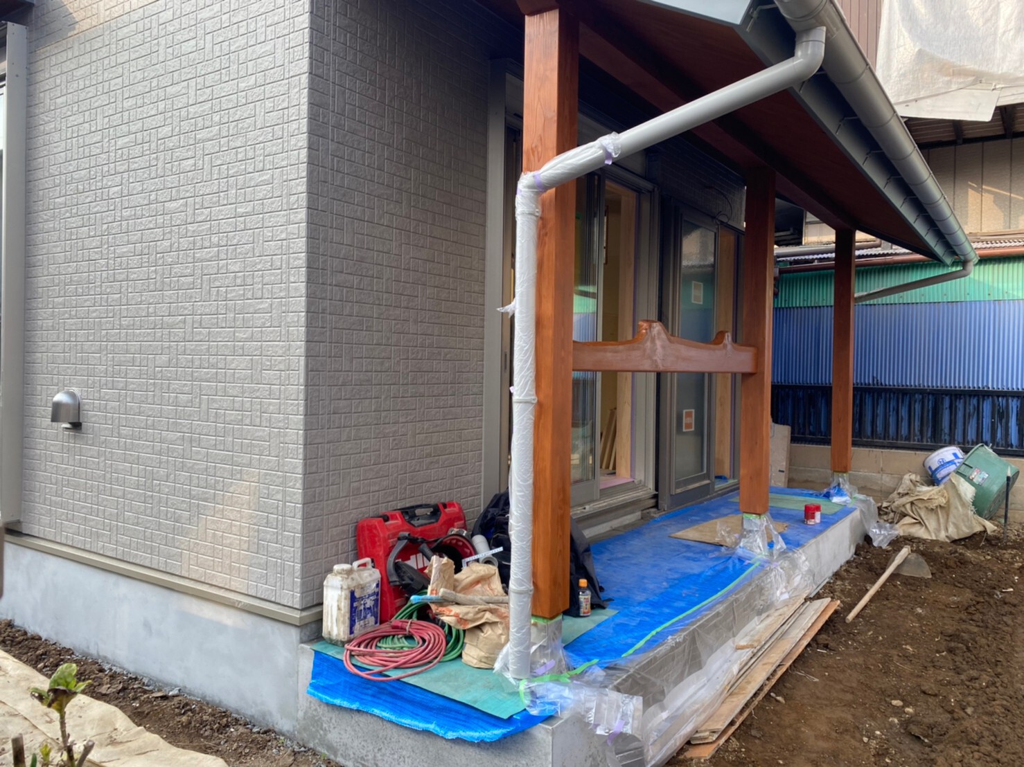 ポーチモルタル仕上げ