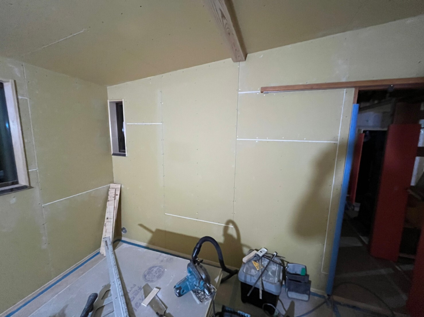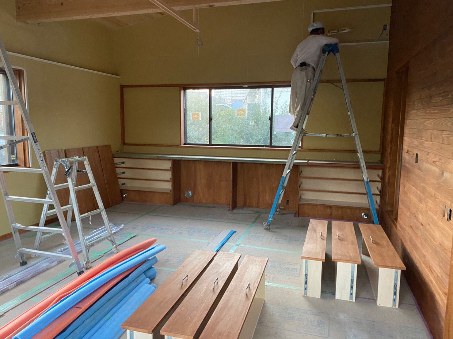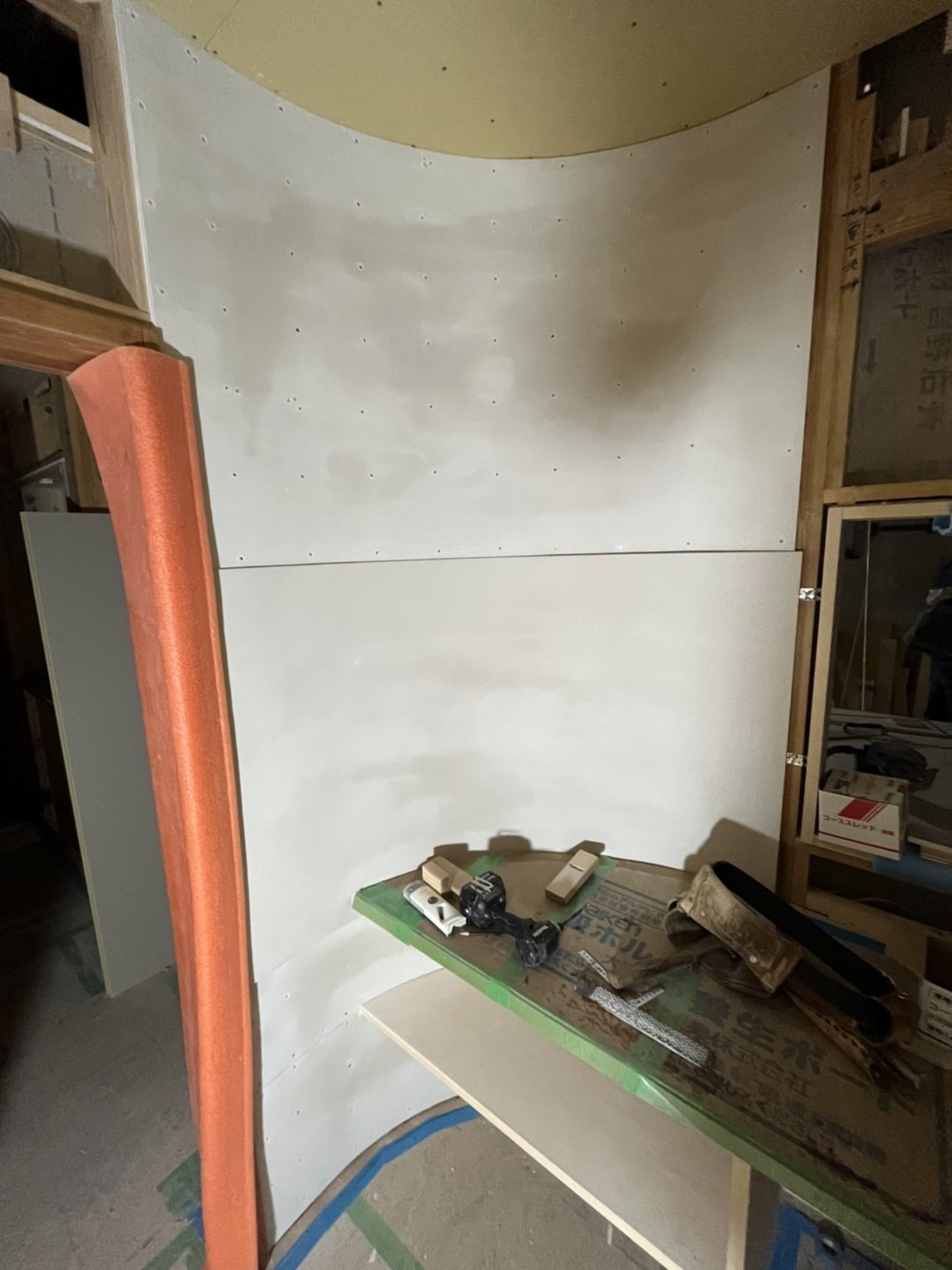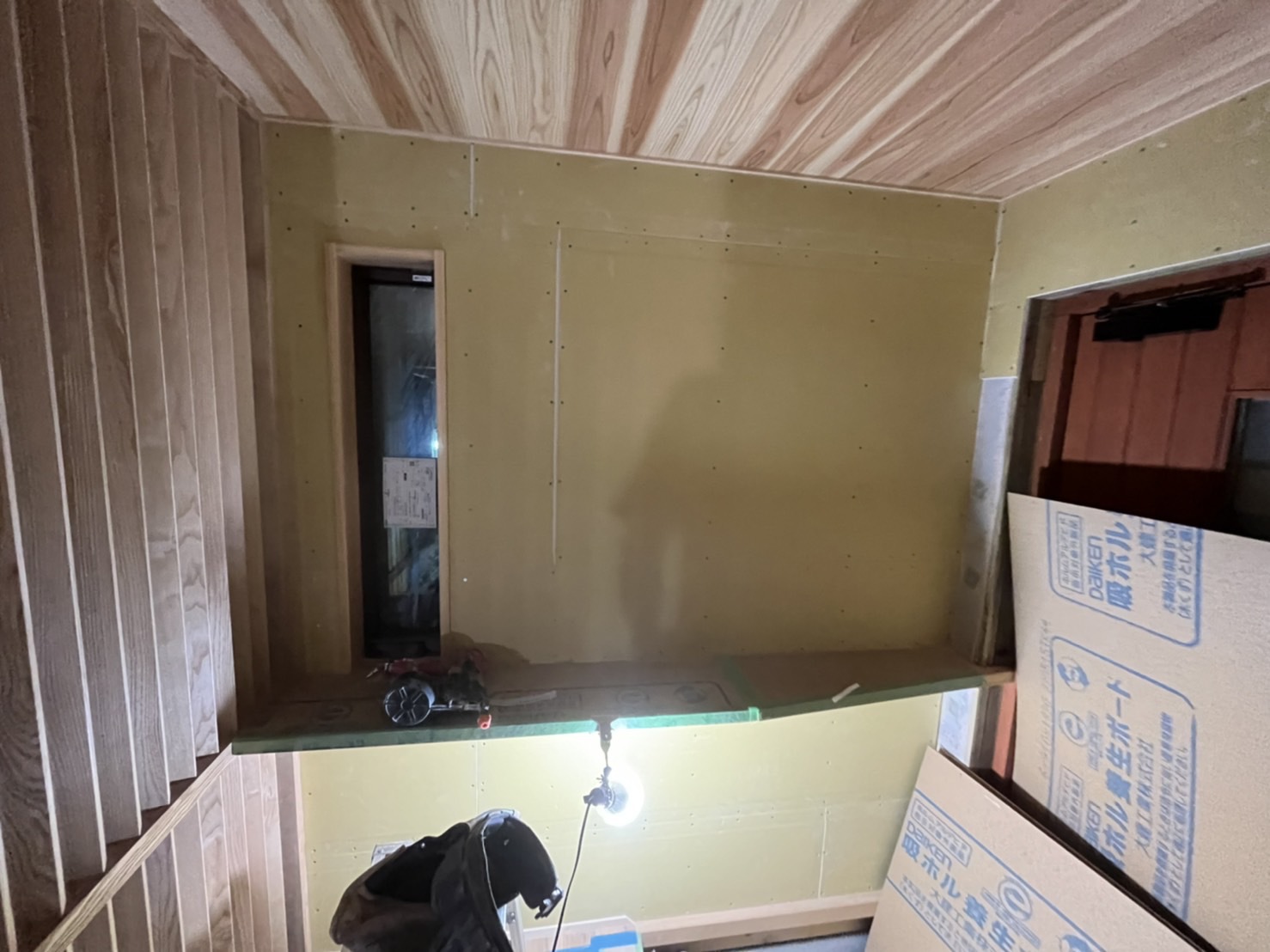 コルクタイル貼り