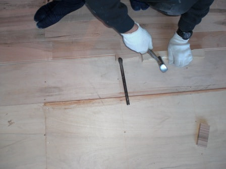 カスガイ、クサビで床張り