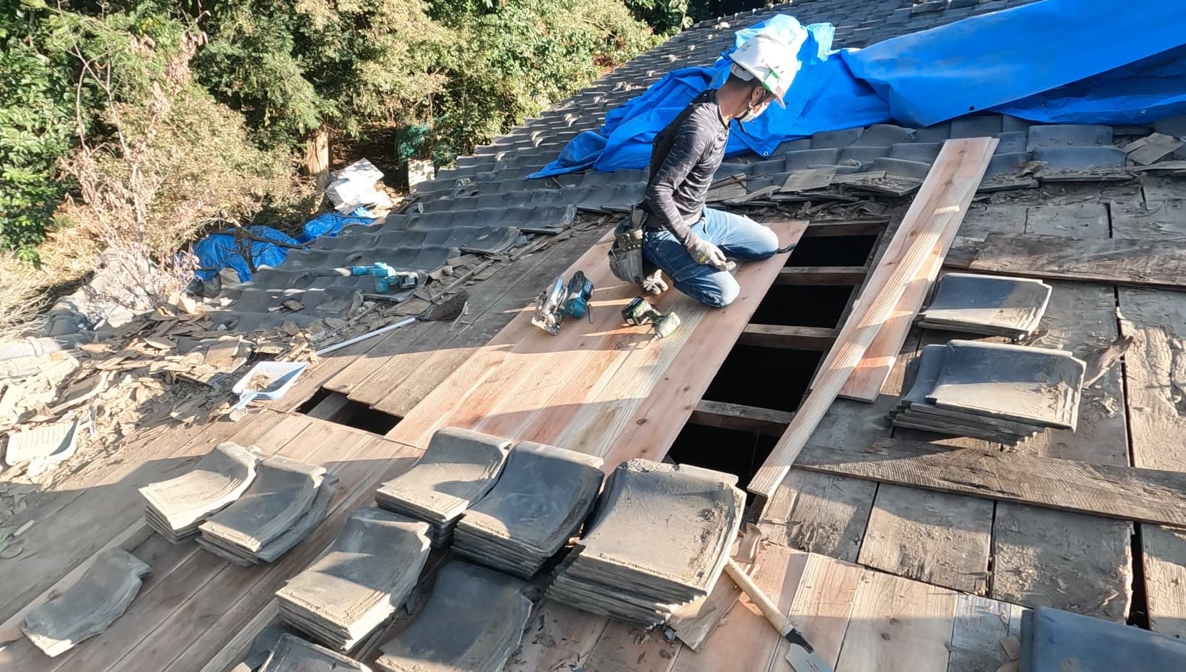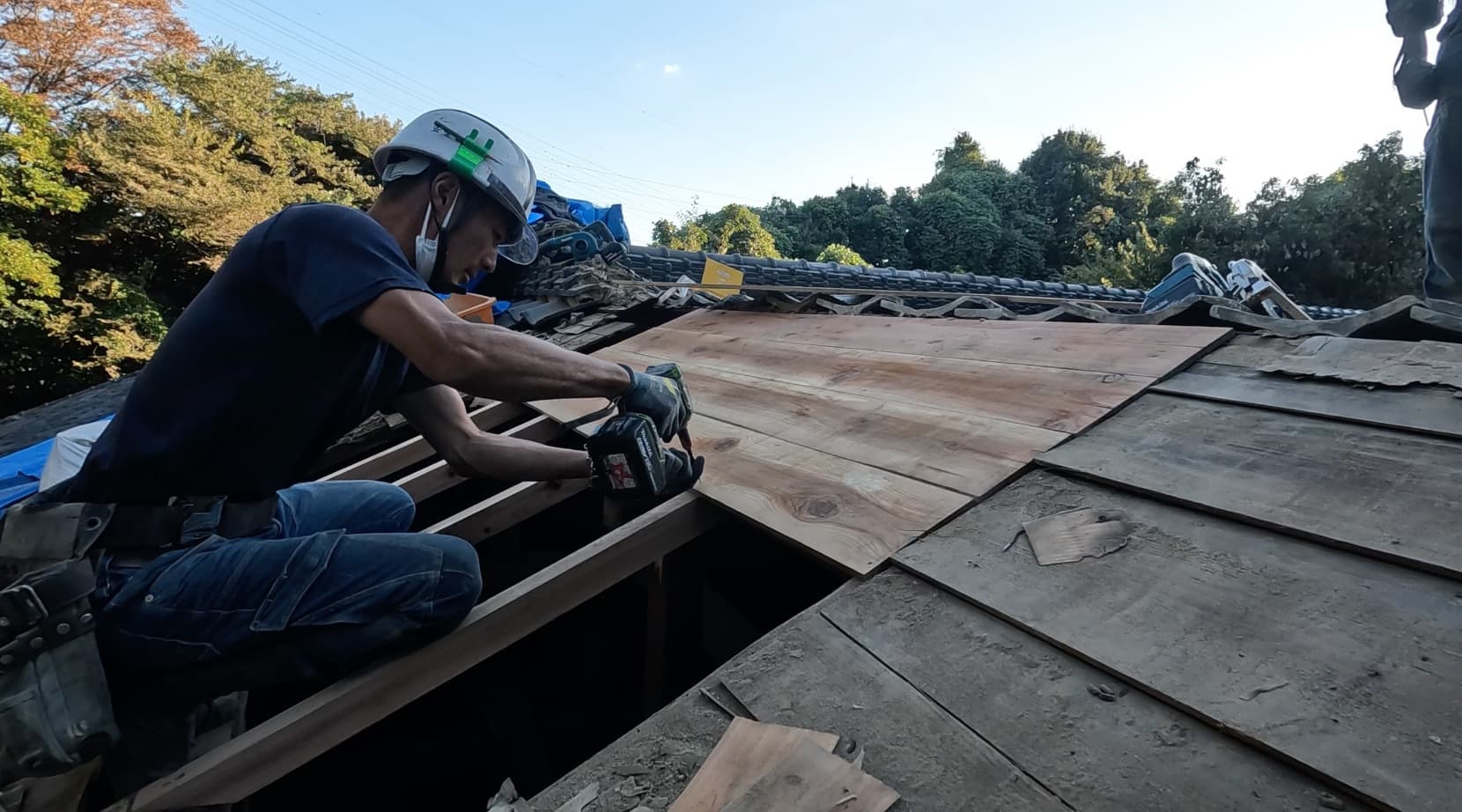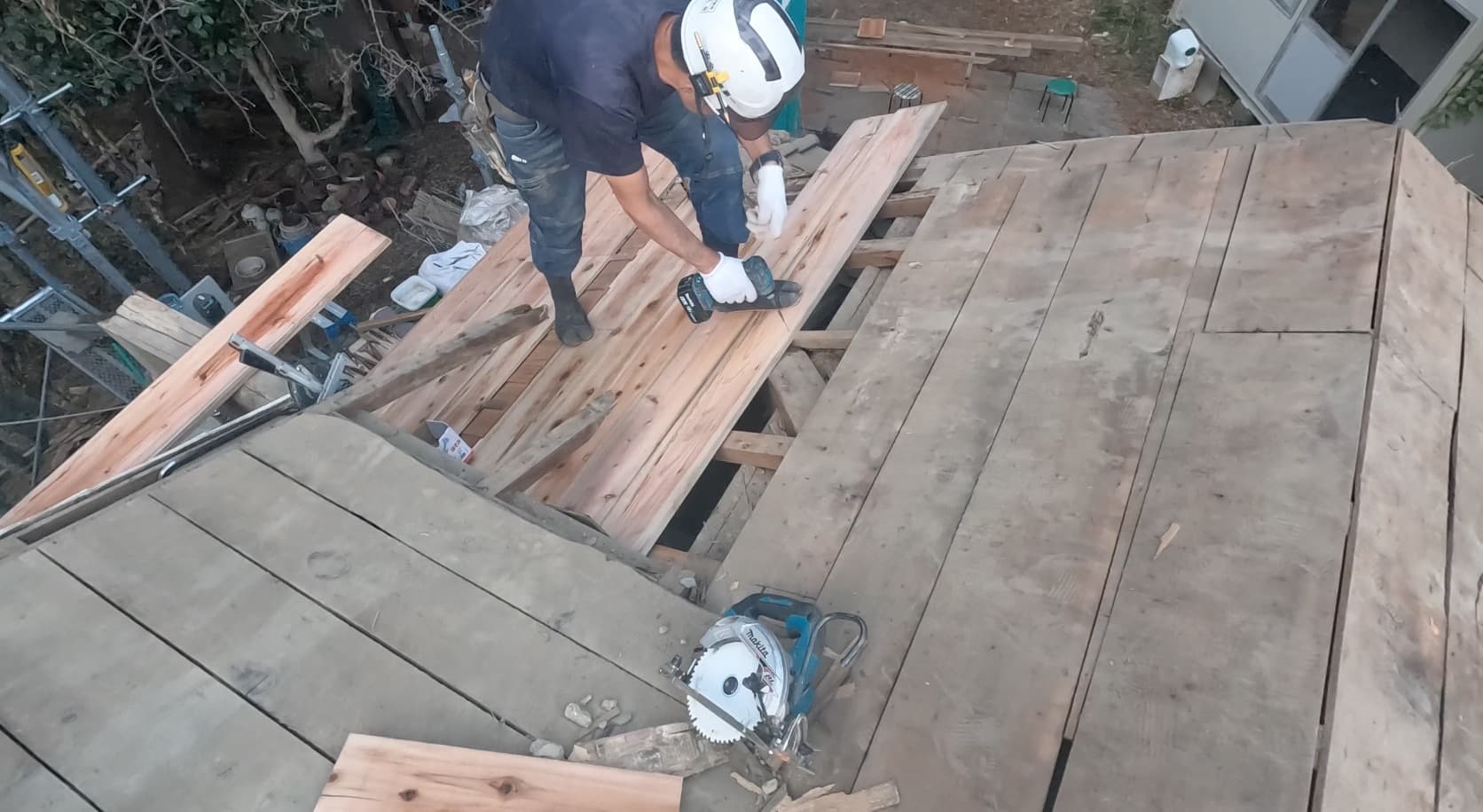 既存野地板剥がし