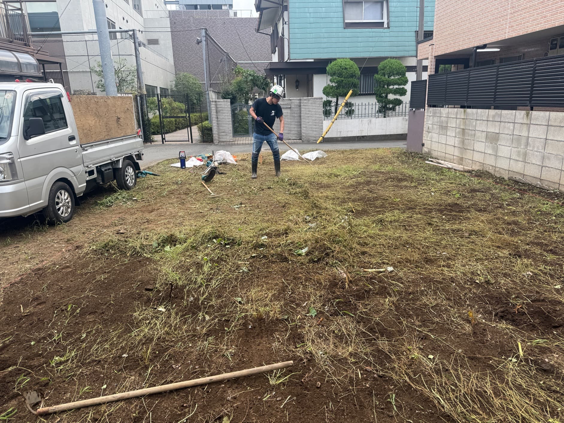 防草シート敷き
