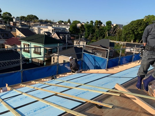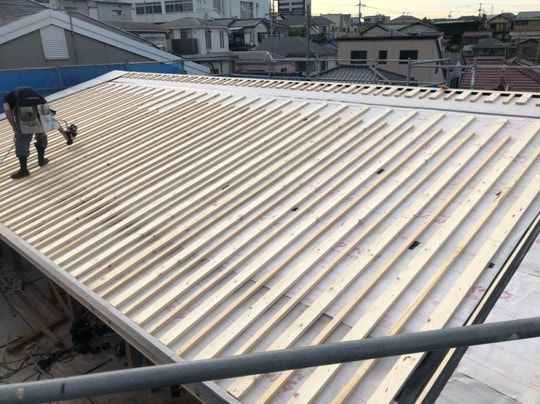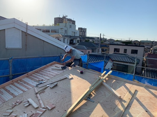 敷き瓦貼り