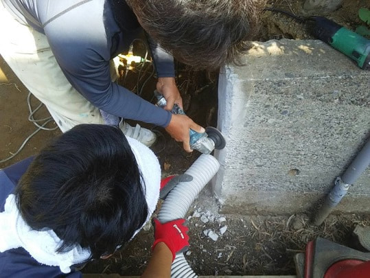 水抜きパイプ取付