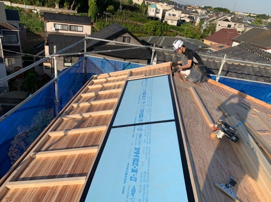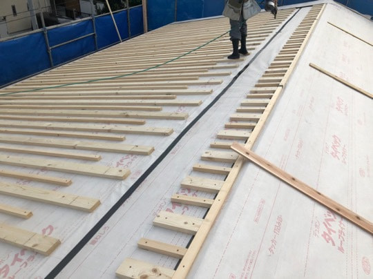 敷き瓦貼り