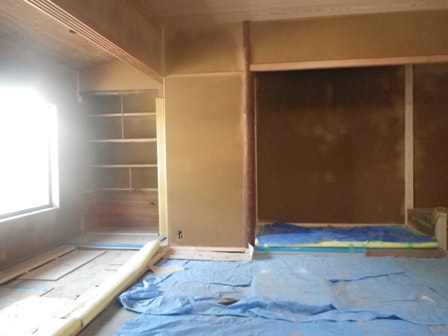 壁紙モルタル養生中