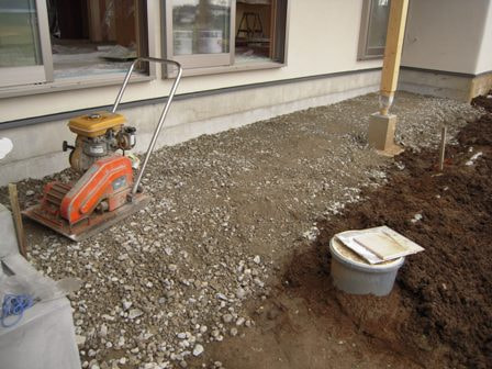 プレートにて転圧