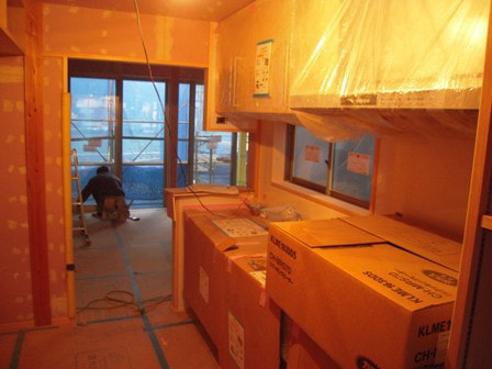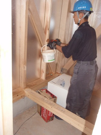 気密テープ貼り