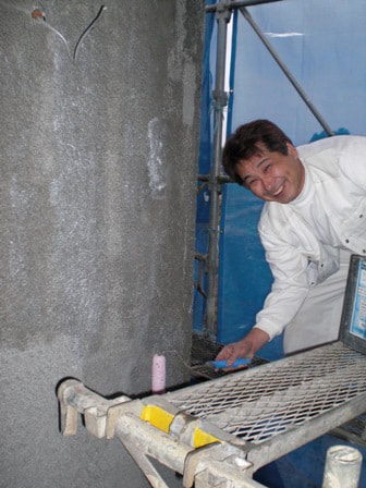 外壁モルタル2回目塗り