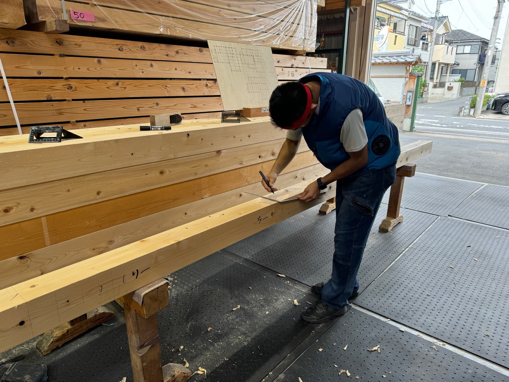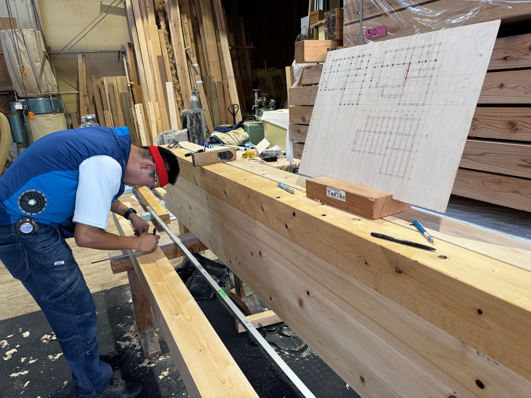 大黒柱墨付け