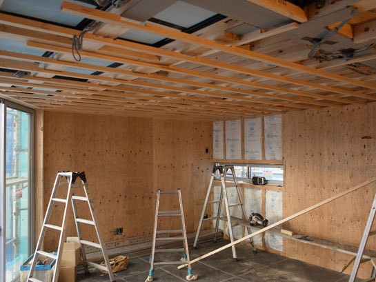二階天井ボード張り