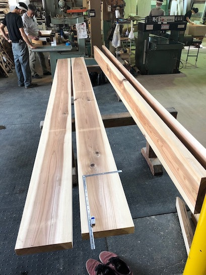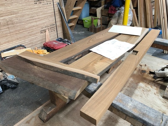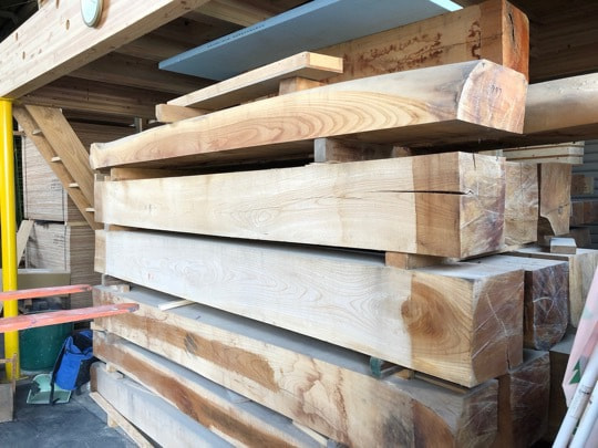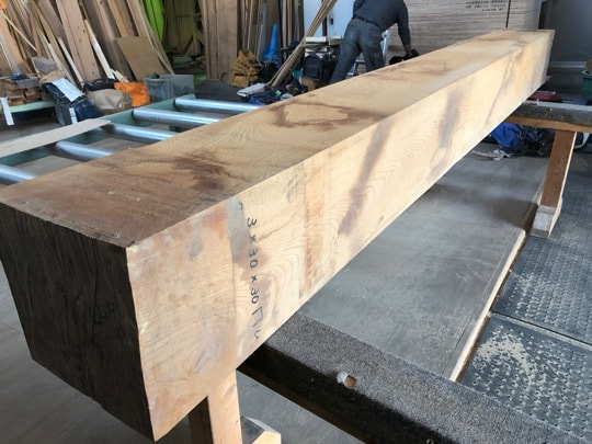 既存のケヤキ梁を製材して製作
