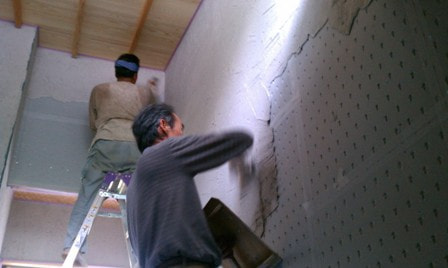 壁紙モルタル養生中