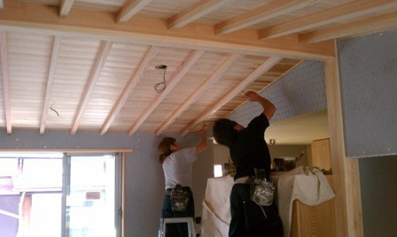 天井 ガマ芯ベニヤ張り
