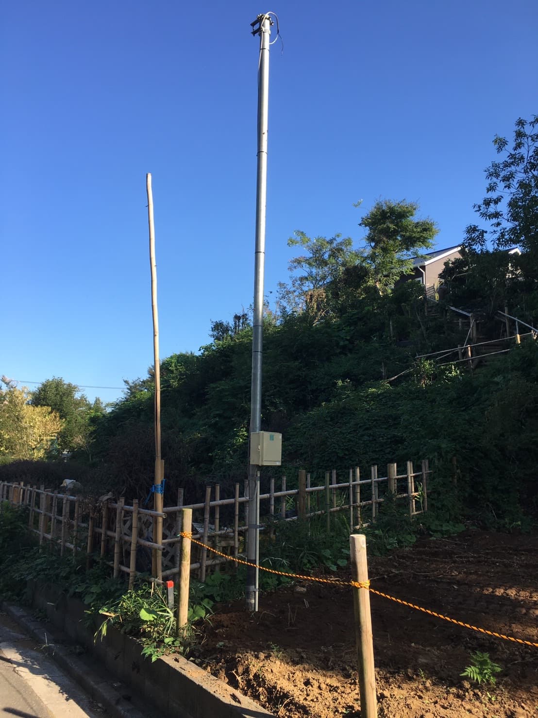 仮設電気ポール建て