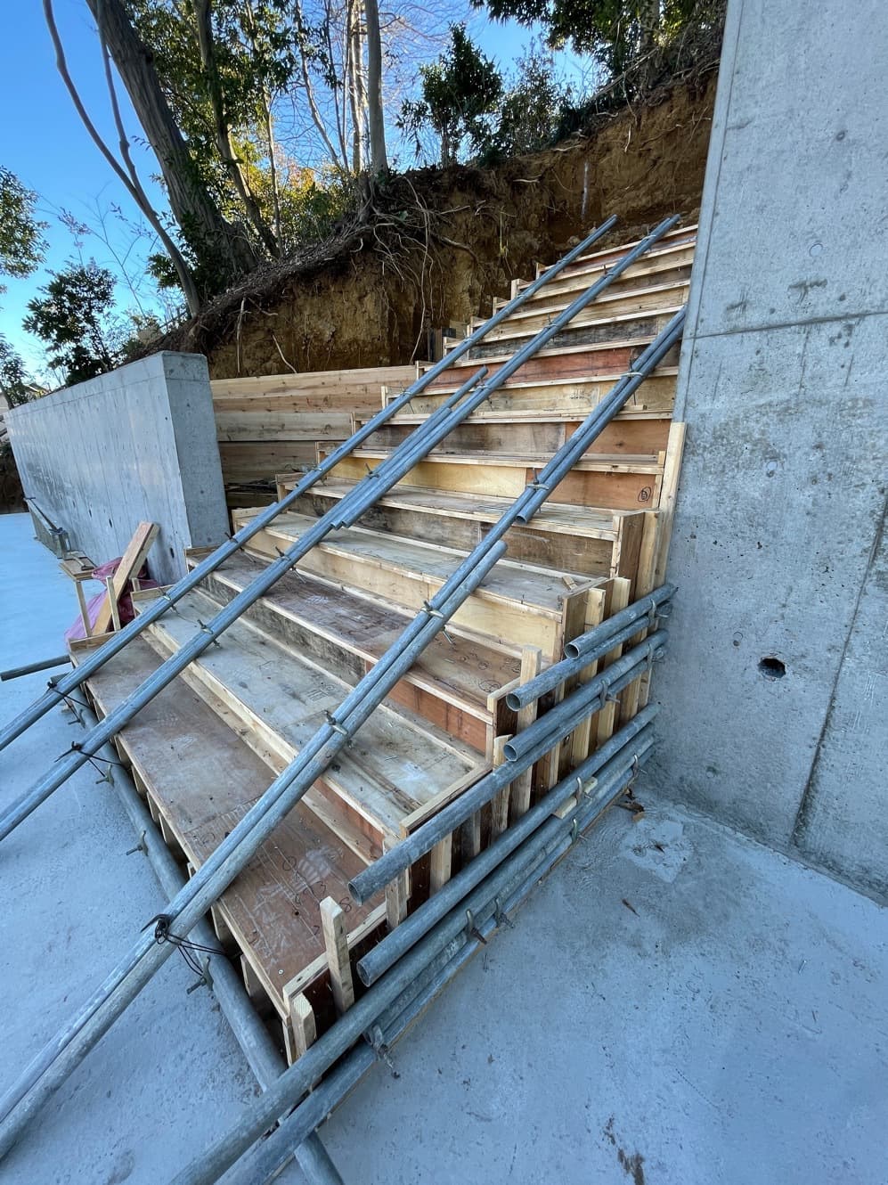 階段部分仮枠設置
