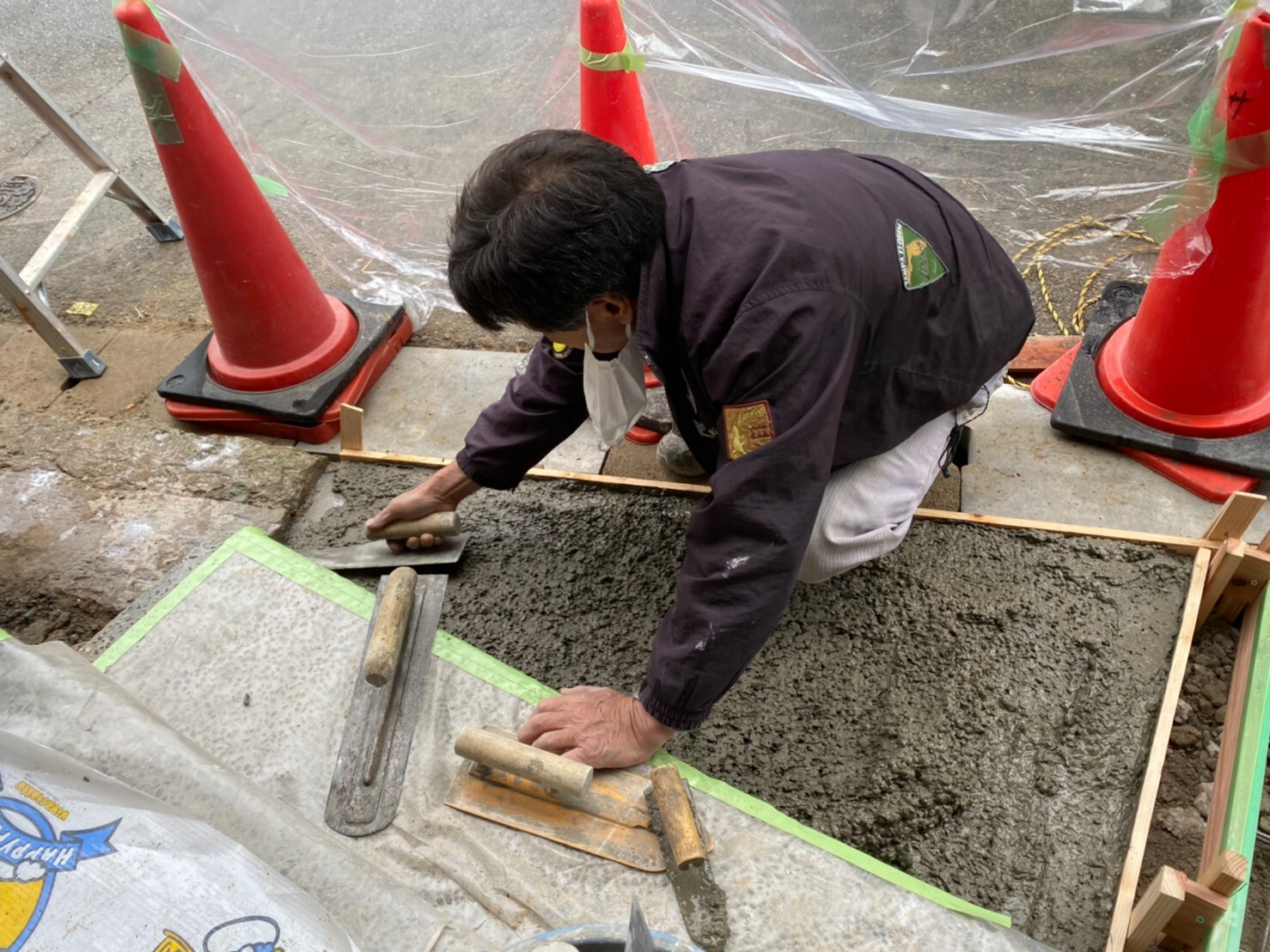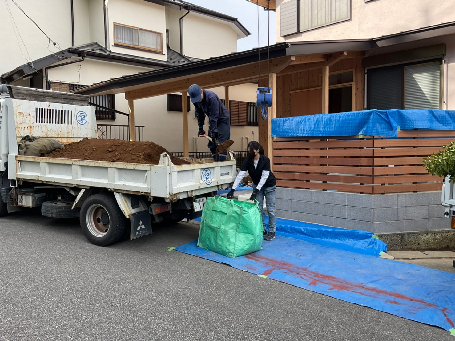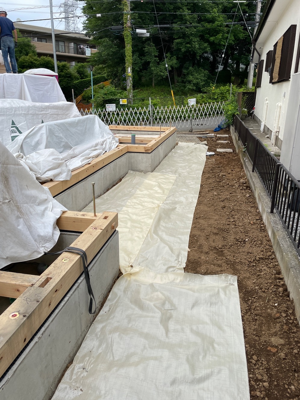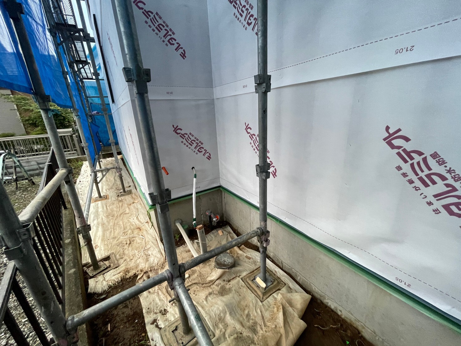 外周泥よけシート敷き