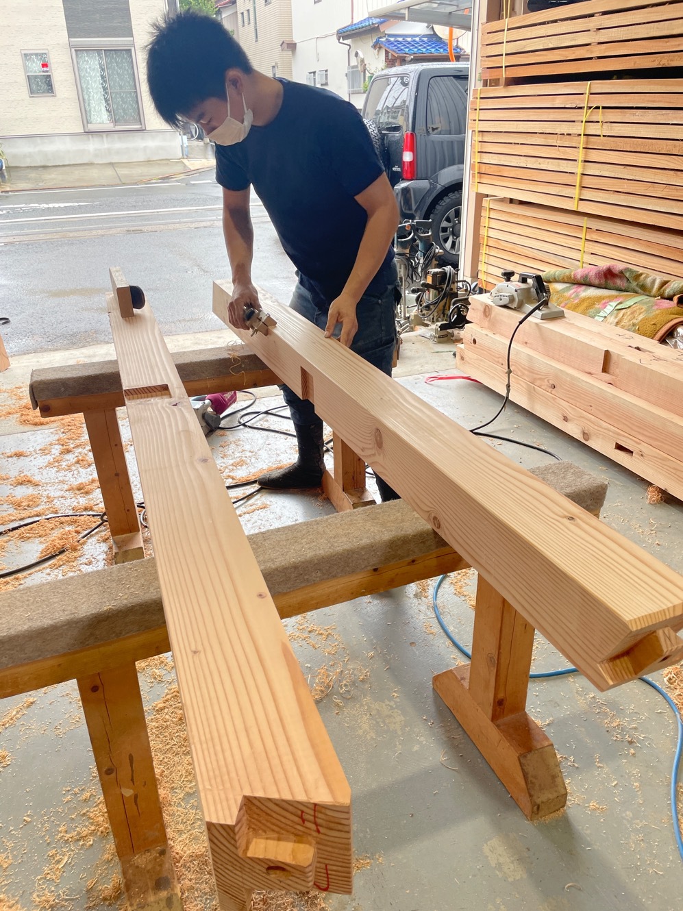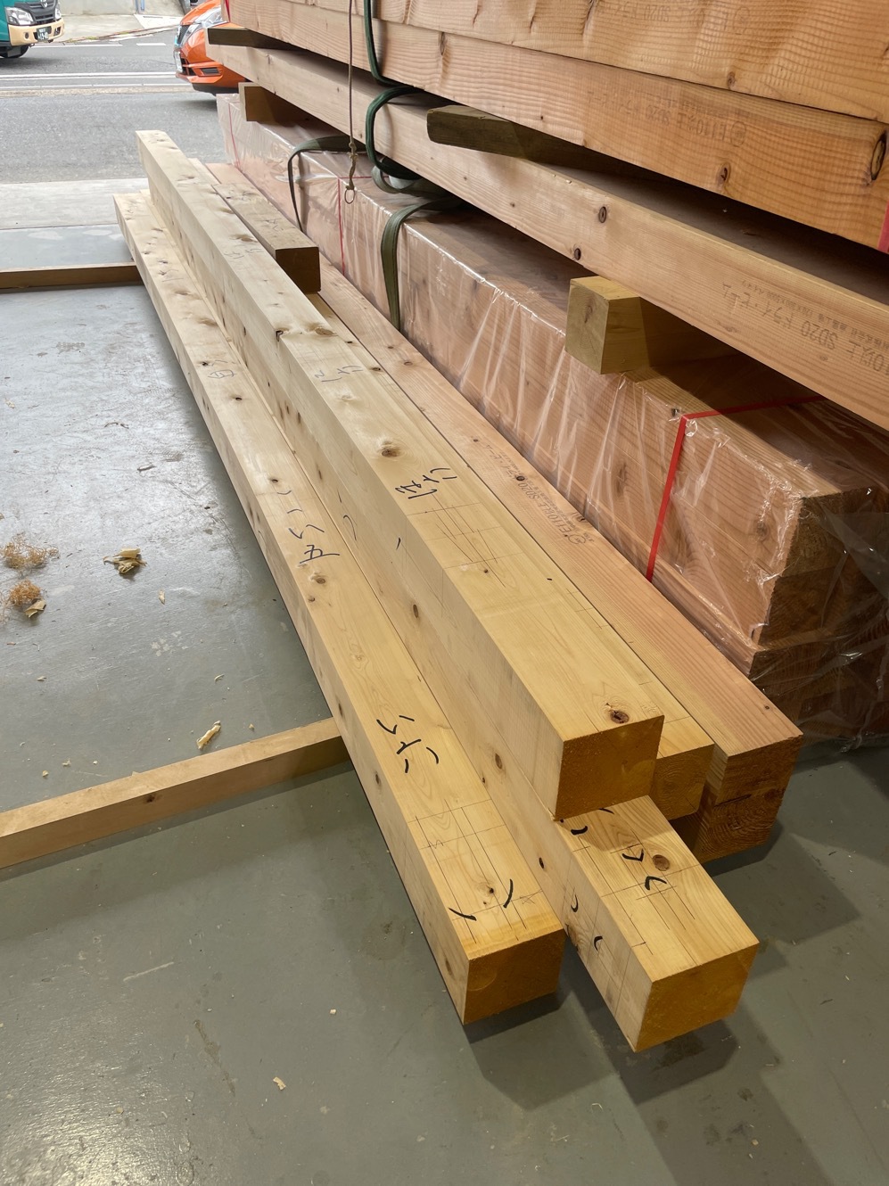 構造材搬入