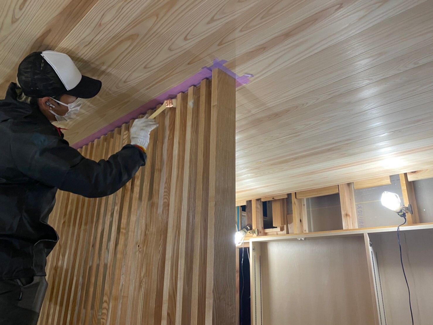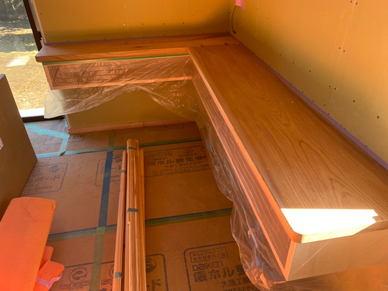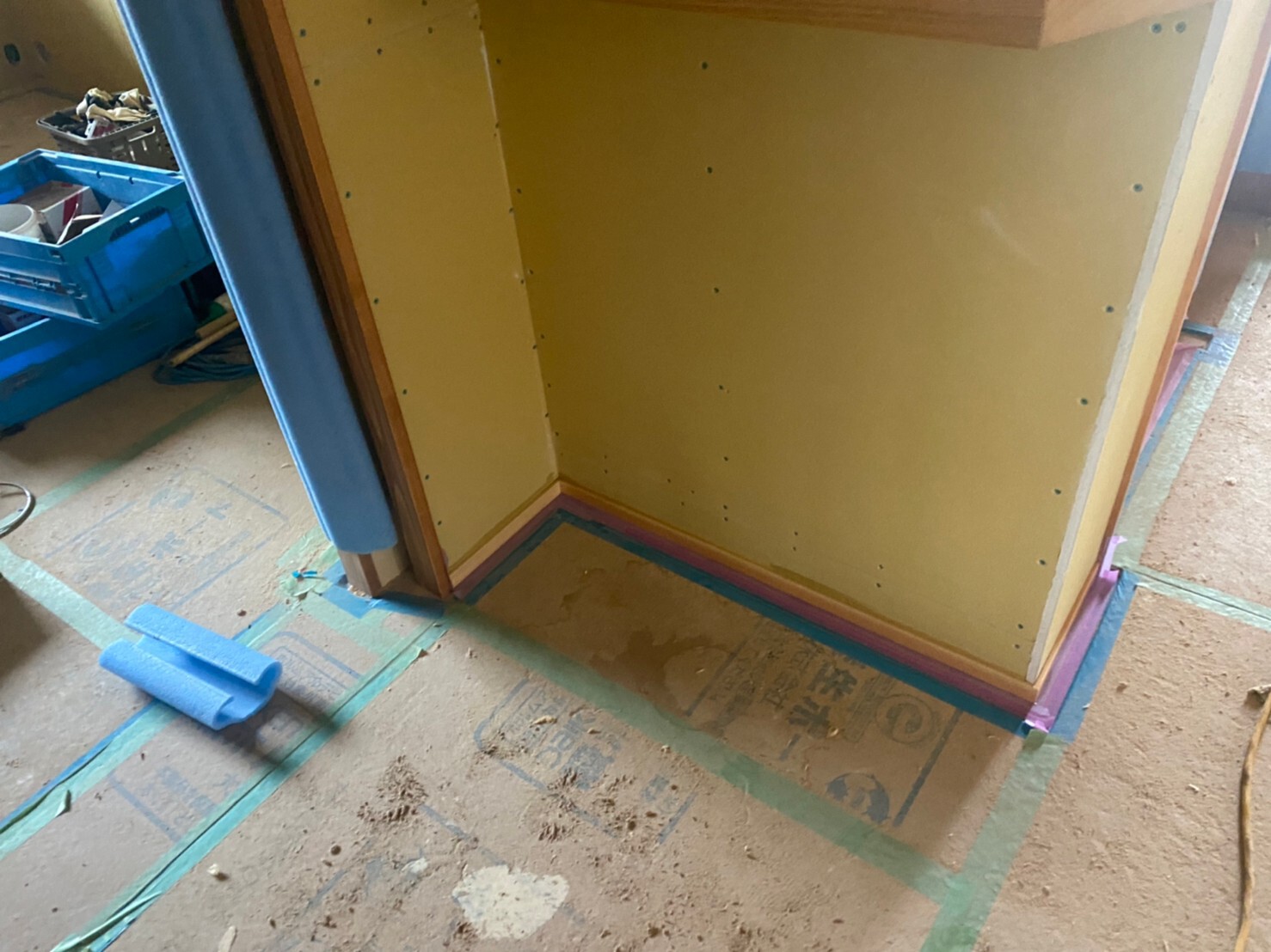 コルクタイル貼り