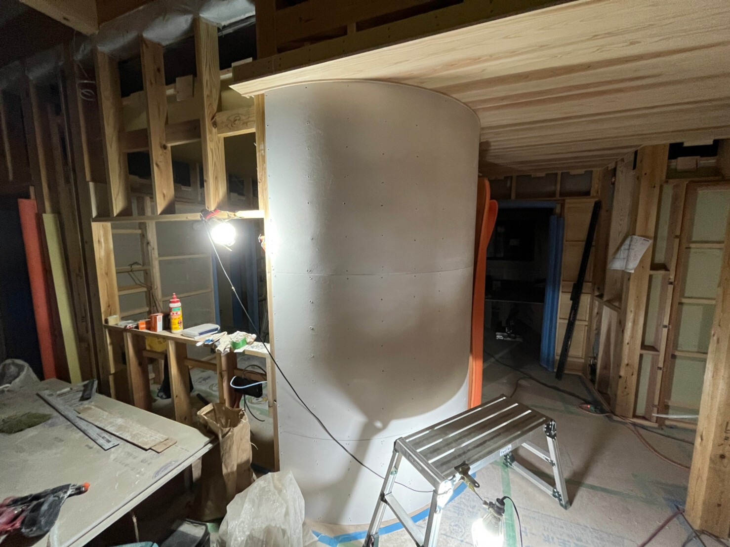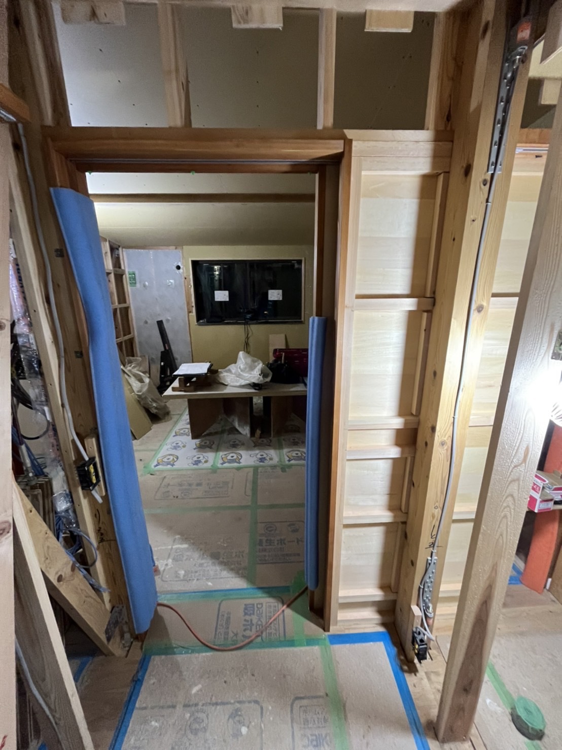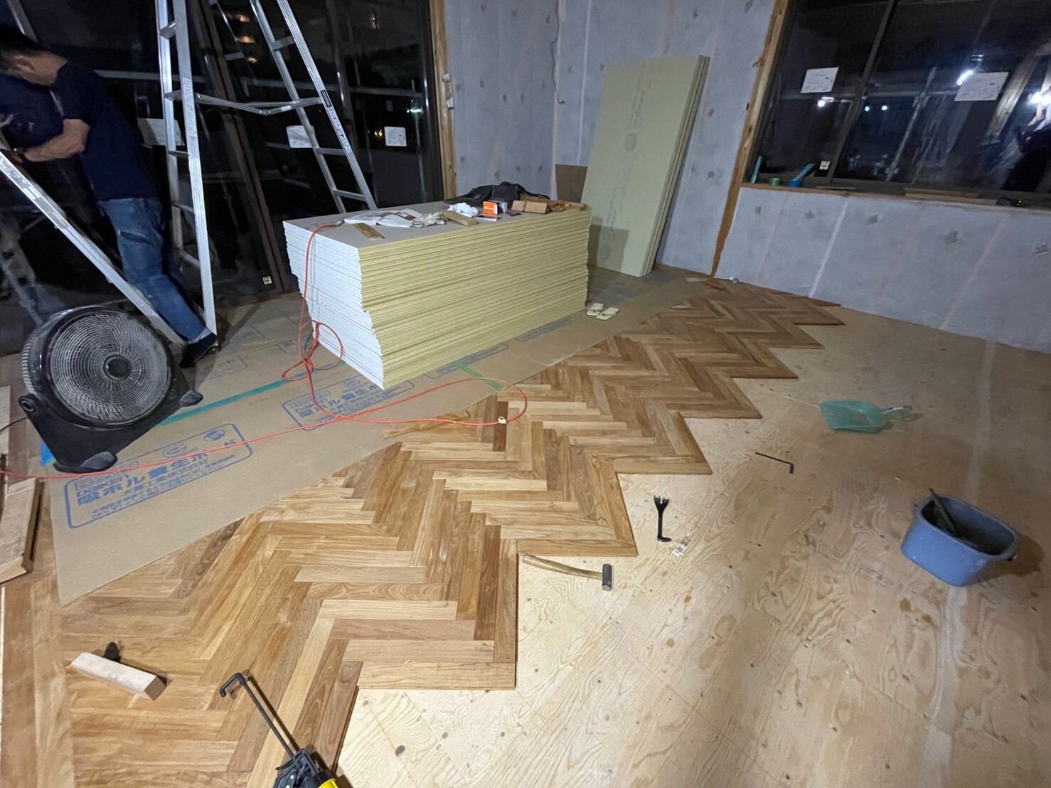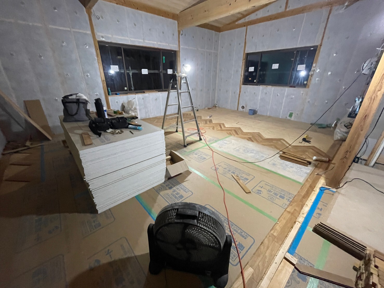 コルクタイル貼り