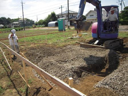 プレートにて転圧