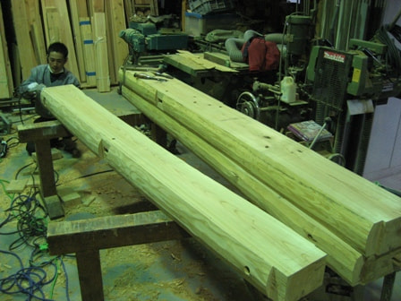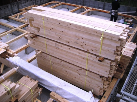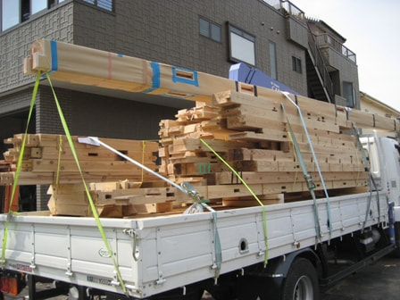 梁材搬入 杉:八溝材