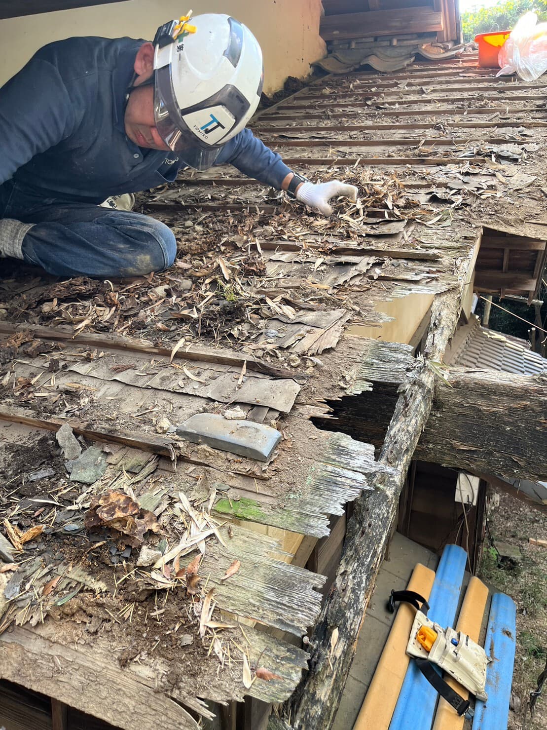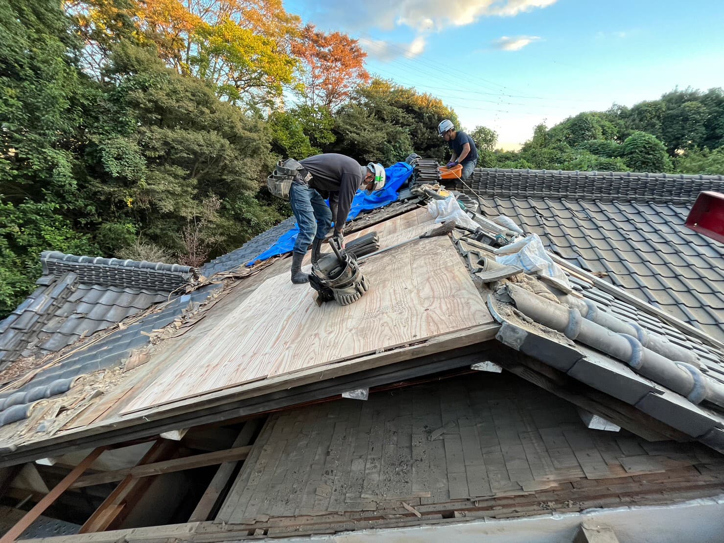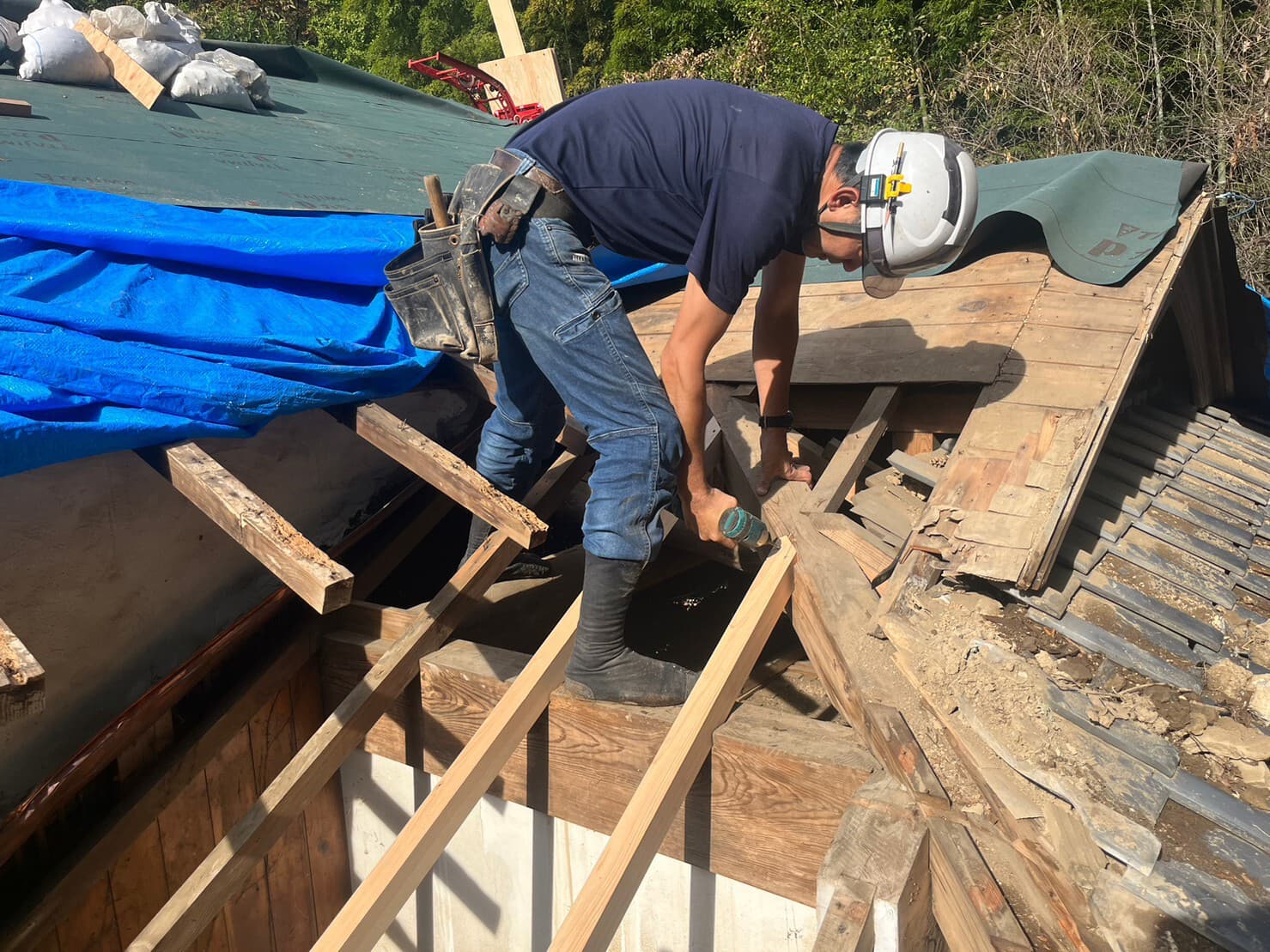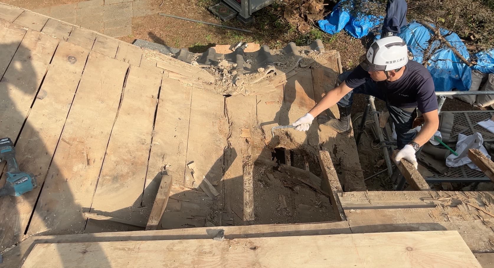 既存野地板剥がし